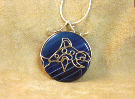 Blue WaveRunner Northwest Pacific Indian design Handmade of Agate and Sterling Includes 1.5 mm sterling snake chain